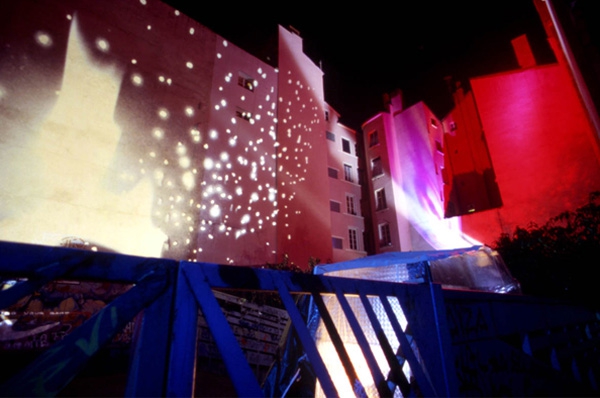 「光の祭典」 リヨン市「光のフェスティヴァル」 フランス 1999年12月3日~8日 リオン市の繁栄を築いた絹織物の職人達の記憶を辿るライトスケープ。当時の工房地区に光の織り成す数キロの道のりを創作。